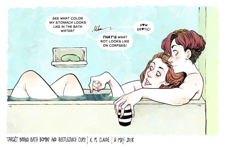 It’s also sublime to know that “Galaxy Bomb” Da Bomb Bath Fizzers at Target will make you and your partner look like corpses. Y’know, if you’re cool enough to be into that.