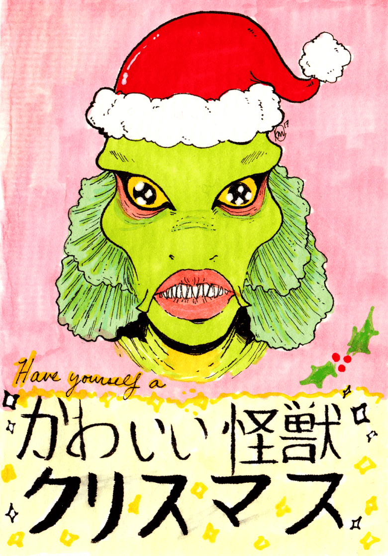 Kawaii Kaiju Kurisumasu A holiday card done for my friend Ben who likes monsters. Pen and marker | Dec 2017