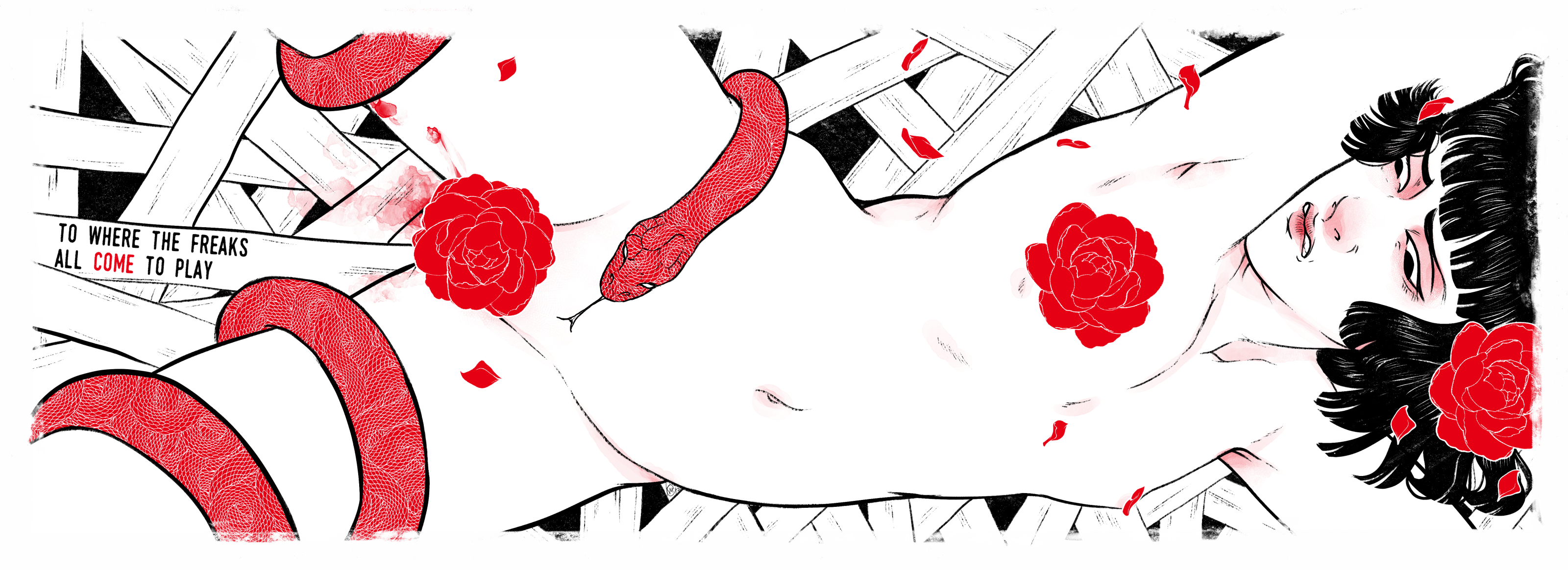 MIDORI-CHAN 『みどりちゃん』is a short horror comic inspired by the film 『(地下幻燈劇画 少女椿』by Hiroshi Harada, based on the comic『少女椿』 by Suehiro Maruo. A mix of illustration and poetry, MIDORI-CHAN 『みどりちゃん』is a small love letter to the ero-guro genre as well as the films of the Japanese horror boom that inspired me and my work both in adolescence and today.