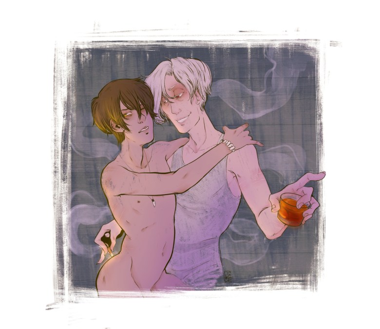 An illustration from a fanfic written for the First Holy Cummunion and Other Obscene Sacraments series, titled “Alligator Blood” by Bayyvon.