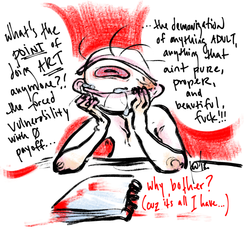 Sketches, memes, concept art, and previews of comic work done over the 2018 Summer months. Includes concepts for later issues of Teufelskreis, scenes from QUARANZINE and previews of the interior art for a comic by Vas Littlecrow in the Velvet Rasputin universe .