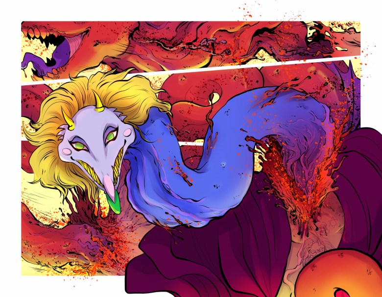 These pages were done for Velvet Rasputin‘s Barxotka series; ultimately, this series took another direction and, as such, Theoria and Theophania were discontinued. While many scenes were a delight to bring to life, the scenes featuring extreme body horror always spoke to my horror artist heart.
